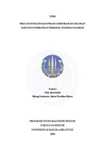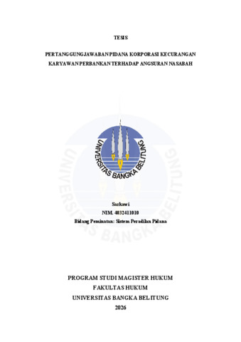 Sarkawi, (NIM. 4032411010) (2026) Pertanggungjawaban Pidana Korporasi Kecurangankaryawan Perbankan terhadap Angsuran Nasabah. Masters thesis, Universitas Bangka Belitung.